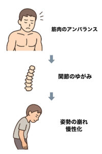 • 姿勢の崩れ → 肩こり・頭痛・腰痛など慢性症状へ