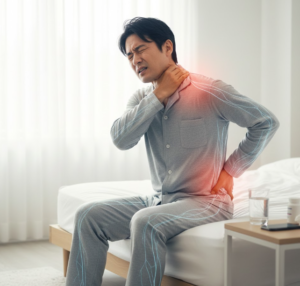 合わない枕や寝姿勢が崩れたまま長時間固まると、筋肉や関節に負担がかかります。